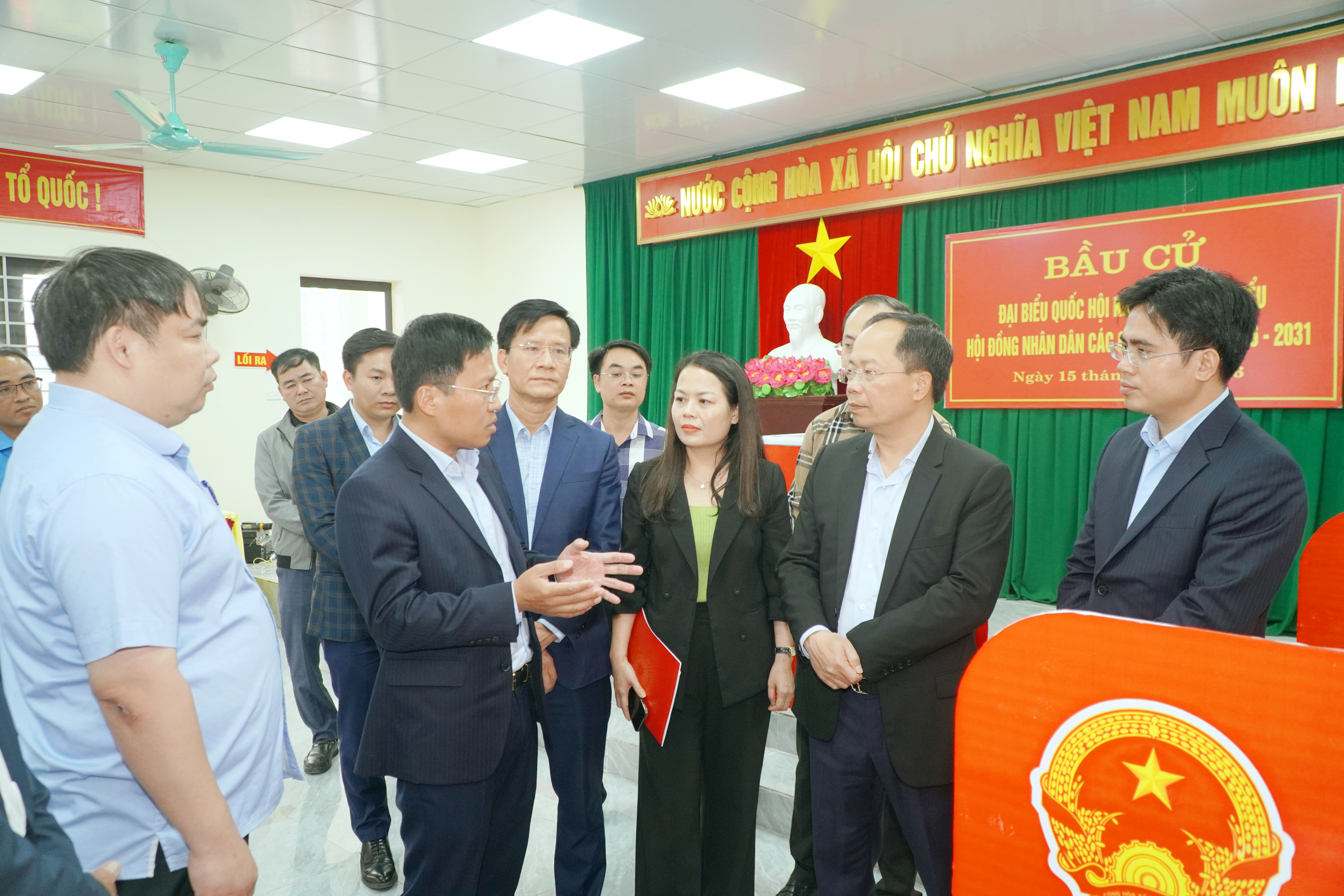 Tại Tổ bầu cử số 18, gồm hai tổ dân phố Nam Quang và Bắc Quang – địa bàn vùng giáo, có 1.017 cử tri, việc niêm yết danh sách cử tri và tiểu sử tóm tắt của những người ứng cử đại biểu Quốc hội và đại biểu HĐND các cấp được thực hiện nghiêm túc, đúng quy định. Công tác trang trí khu vực bỏ phiếu đã hoàn thành; hệ thống điện, âm thanh và các điều kiện cơ sở vật chất cơ bản đảm bảo phục vụ cuộc bầu cử.