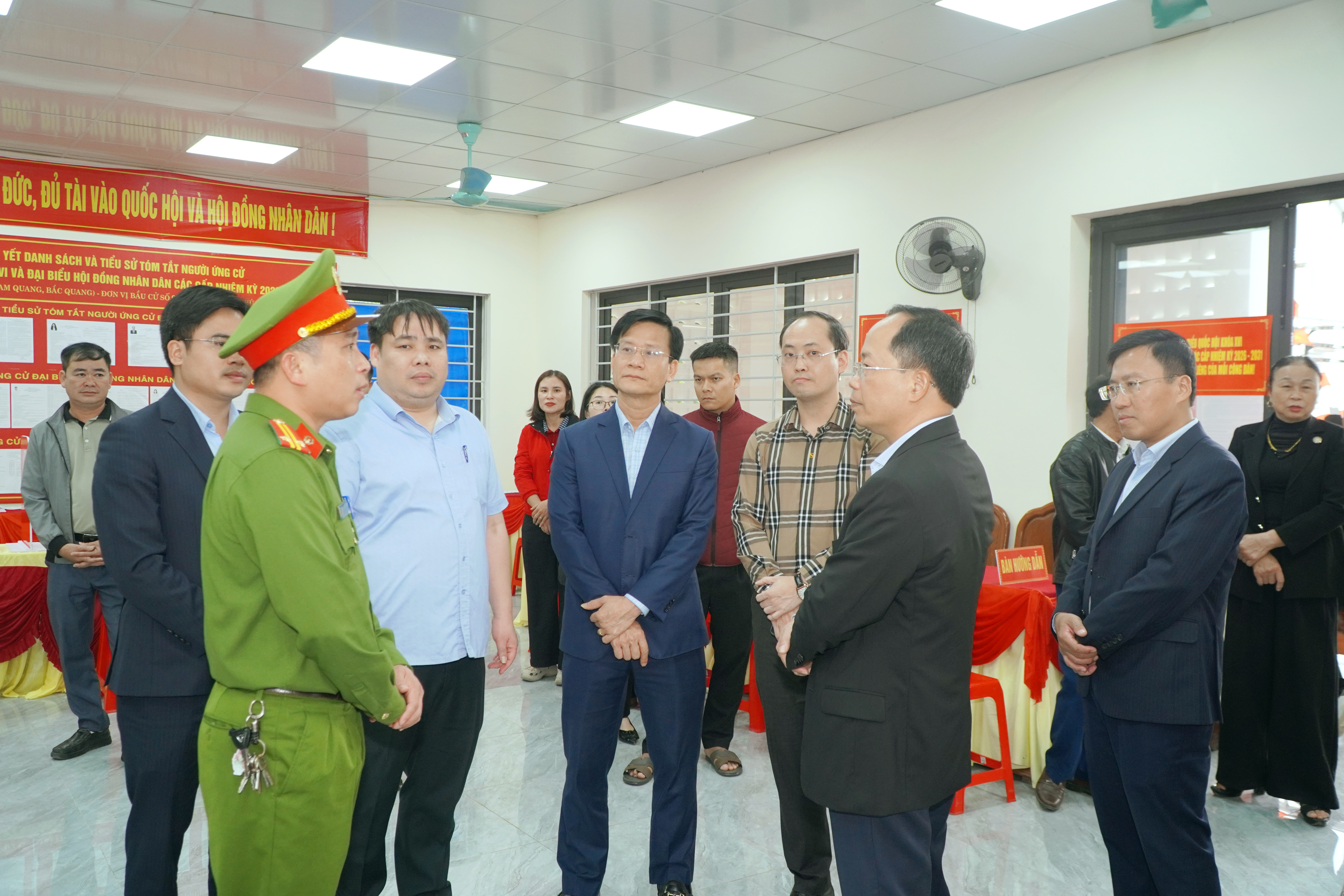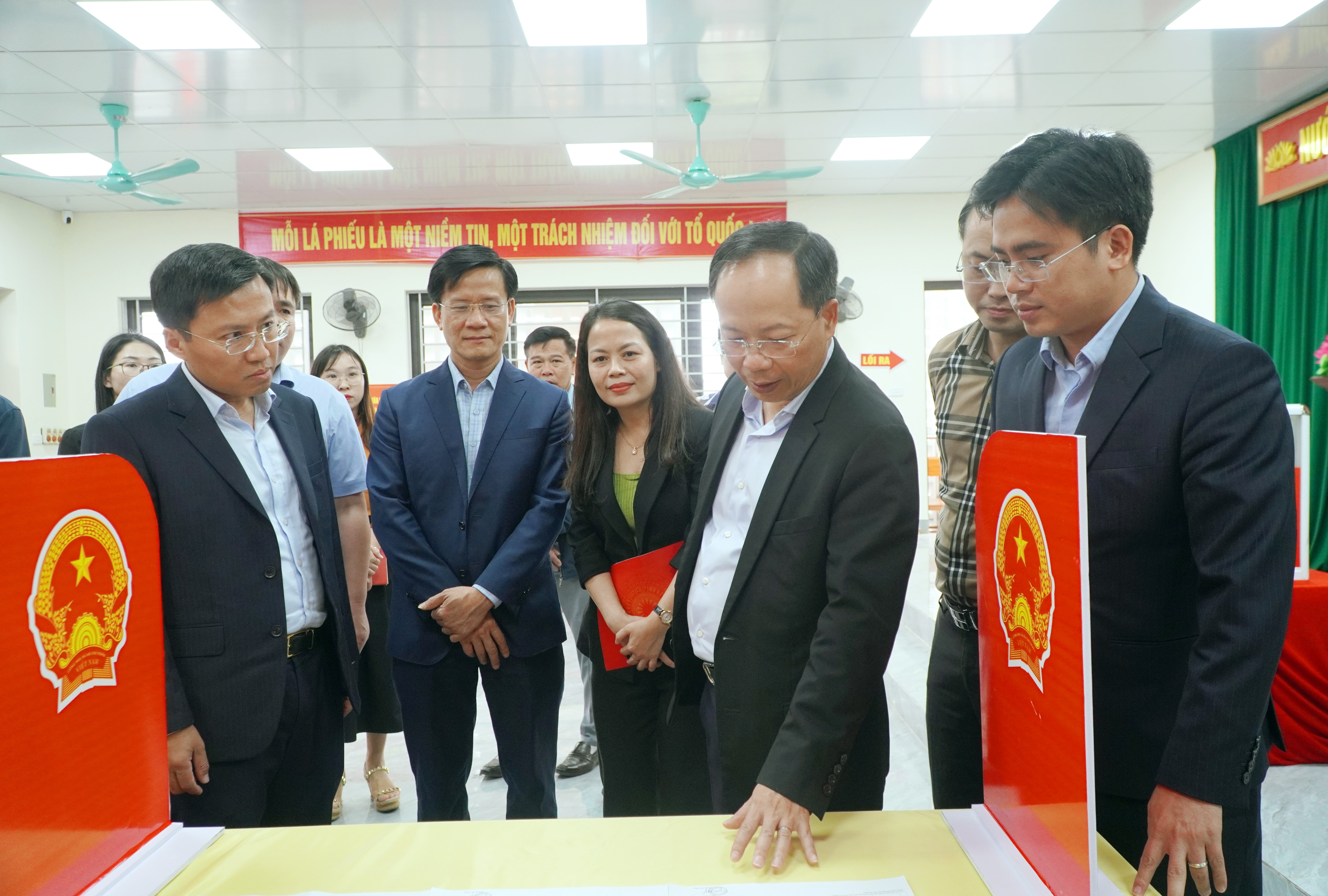 Đoàn đã kiểm tra thực tế tại Tổ bầu cử số 18 (tổ dân phố Nam Quang, Bắc Quang) và Tổ bầu cử số 13 (tổ dân phố Tiền Tiến, Trung Tiến).