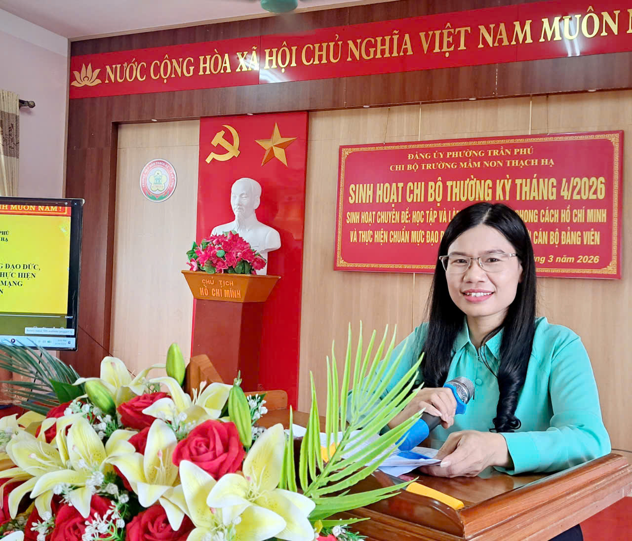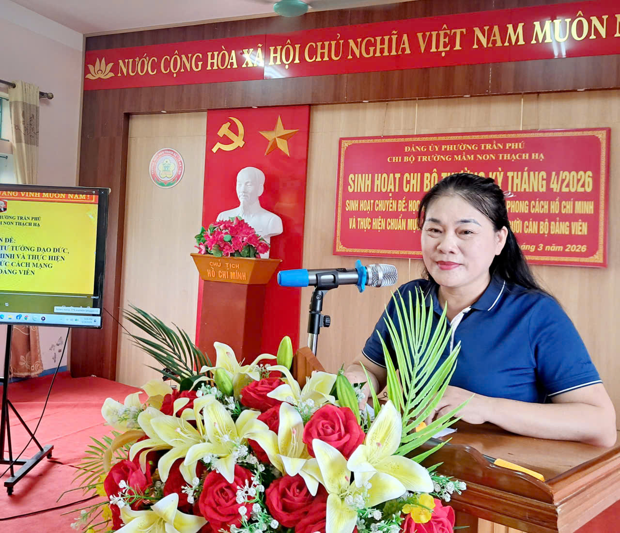 Chi bộ Trường Mầm non Thạch Hạ hiện có 16 đảng viên là cán bộ quản lý, giáo viên nòng cốt, giữ vai trò lãnh đạo toàn diện các hoạt động của nhà trường.