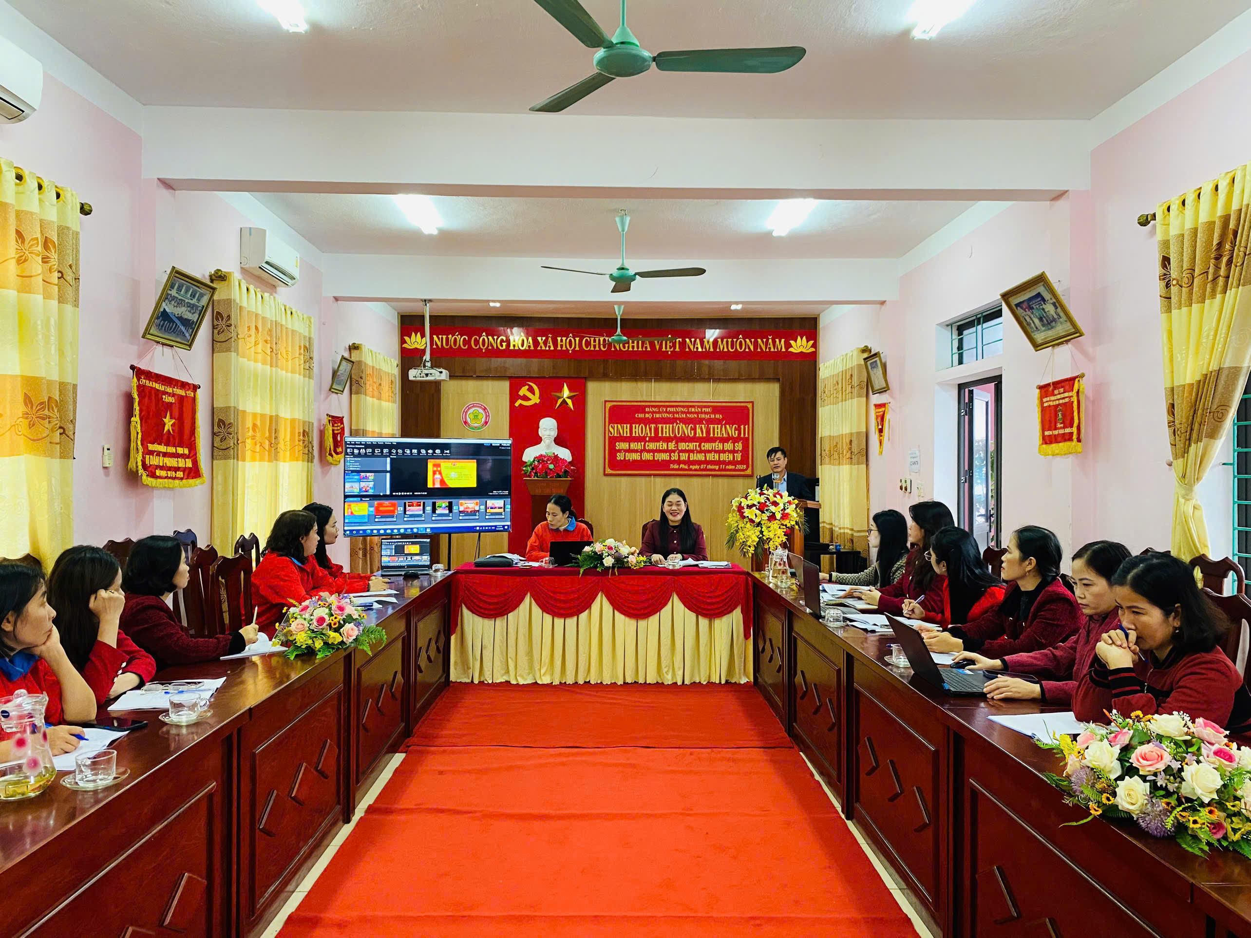 Toàn cảnh buổi sinh hoạt chuyên đề “Ứng dụng CNTT, chuyển đổi số và sử dụng Sổ tay đảng viên điện tử” của Chi bộ Trường Mầm non Thạch Hạ