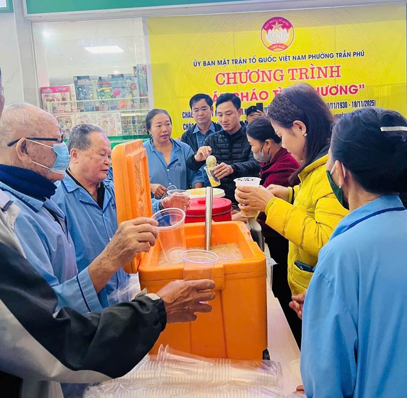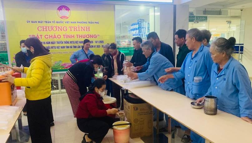 Hướng tới chào mừng Đại hội đại biểu Mặt trận Tổ quốc Việt Nam tỉnh Hà Tĩnh, nhiệm kỳ 2025 – 2030, và kỷ niệm 95 năm Ngày truyền thống MTTQ Việt Nam (18/11/1930 – 18/11/2025), trong hai ngày14 và 15/11/2025, Ủy ban Mặt trận Tổ quốc phường Trần Phú đã tổ chức chương trình “Phát cháo tình thương”tại Bệnh viện TTH Hà Tĩnh.