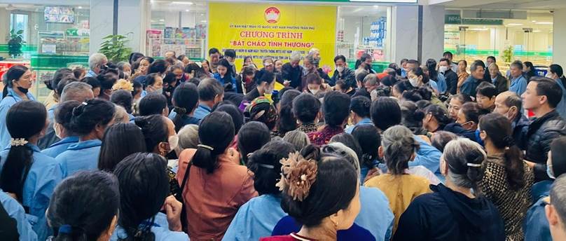 Bệnh nhận và người nhà tham gia chương trình “Bát cháo tình thương”