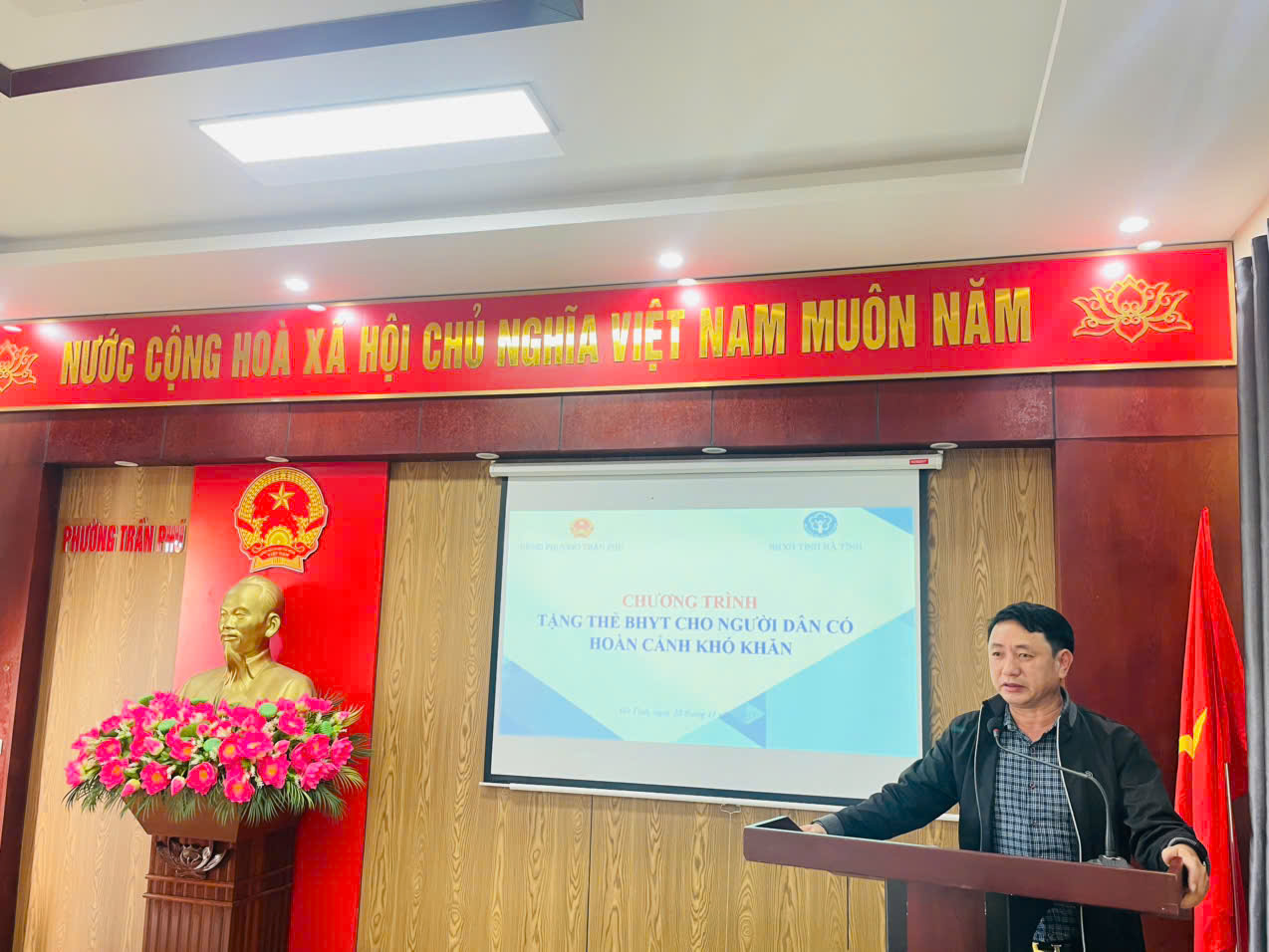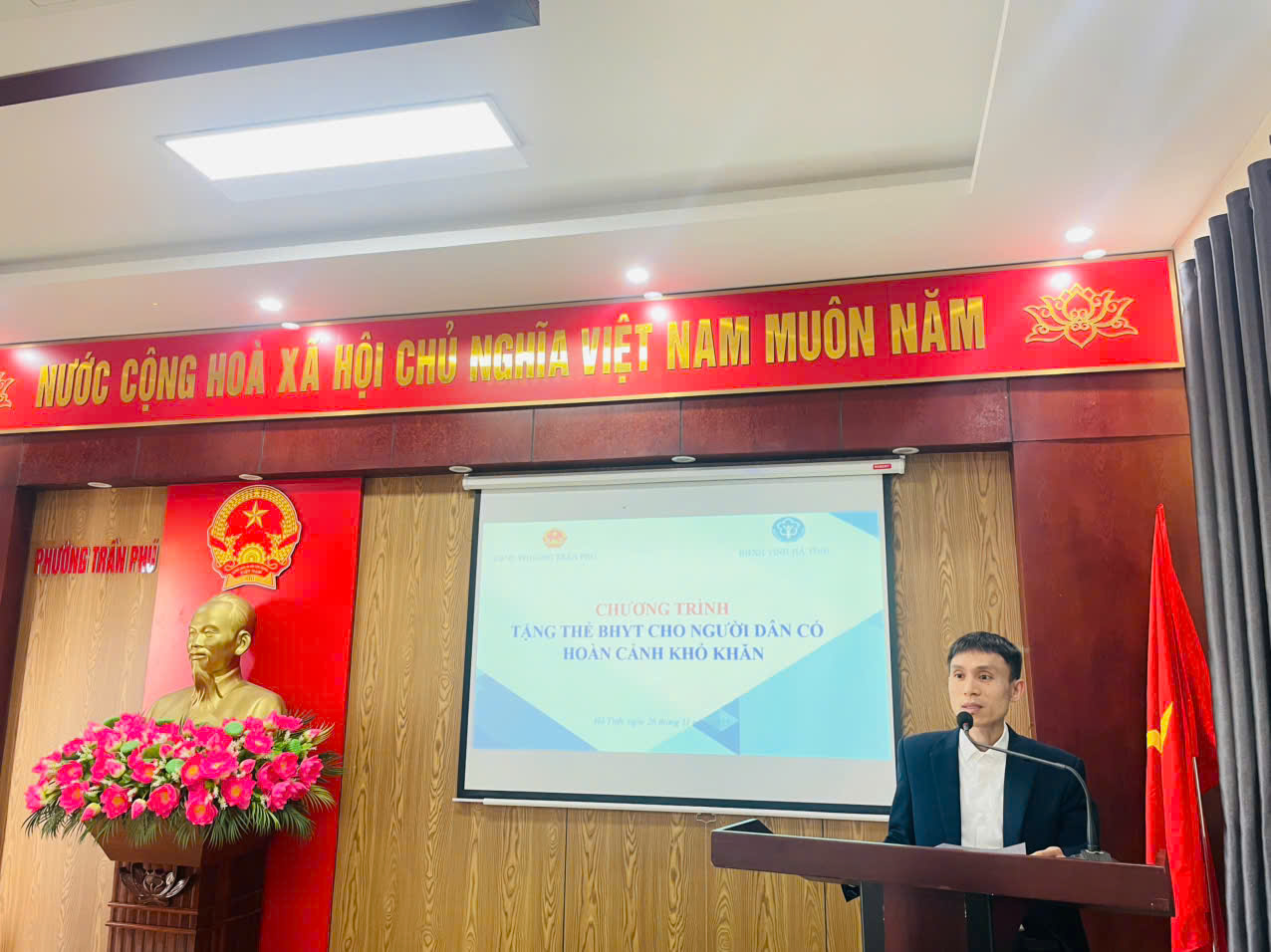Tham dự chương trình có đồng chí Nguyễn Minh Hải – Phó Trưởng phòng Quản lý thu và Phát triển người tham gia BHXH tỉnh cùng các đồng chí chuyên viên phụ trách; về phía địa phương có đồng chí Lê Thị Phương Chi – Phó Chủ tịch UBND phường, đồng chí Nguyễn Thanh Ngọc – Trưởng phòng Văn hoá – Xã hội, cùng đại diện các bộ phận chuyên môn của phường và 20 hộ dân có hoàn cảnh khó khăn được nhận hỗ trợ.