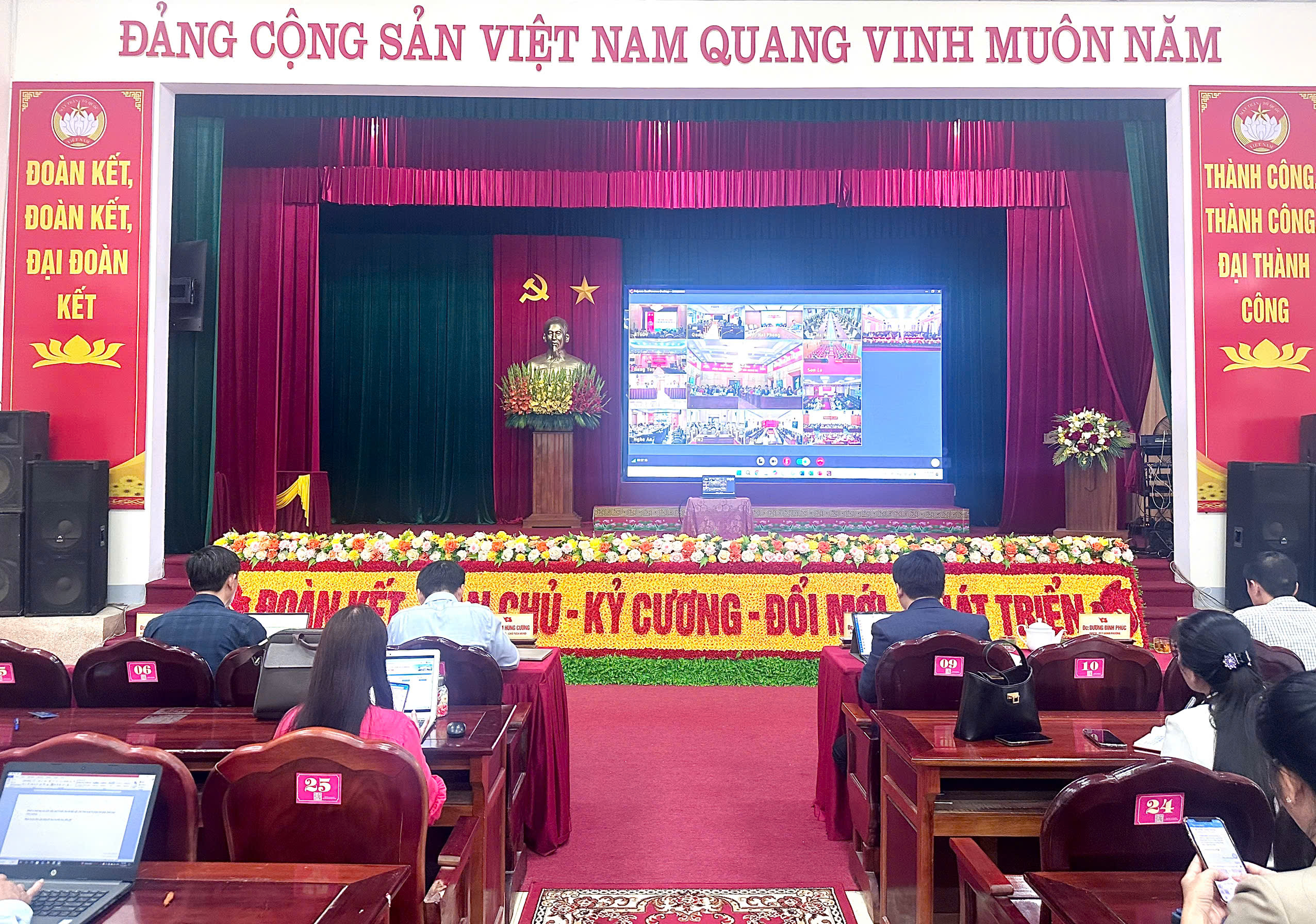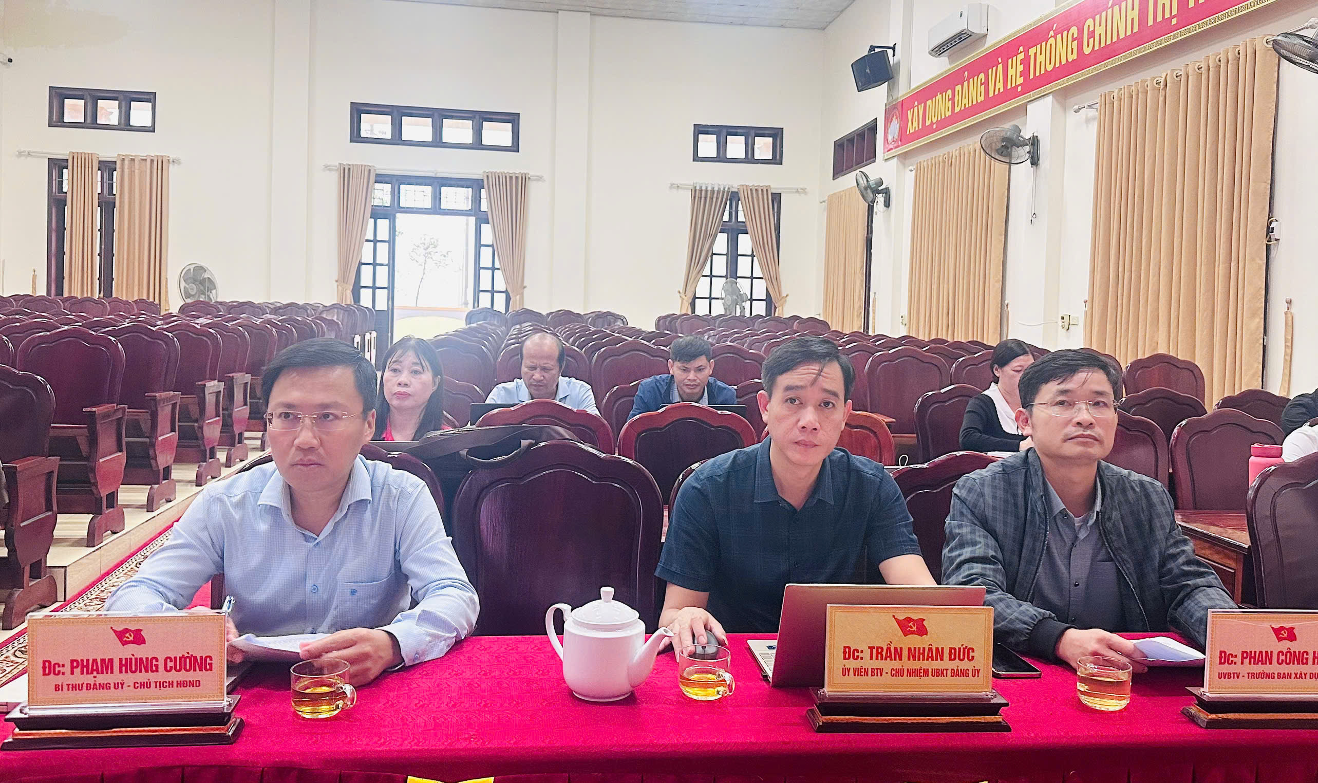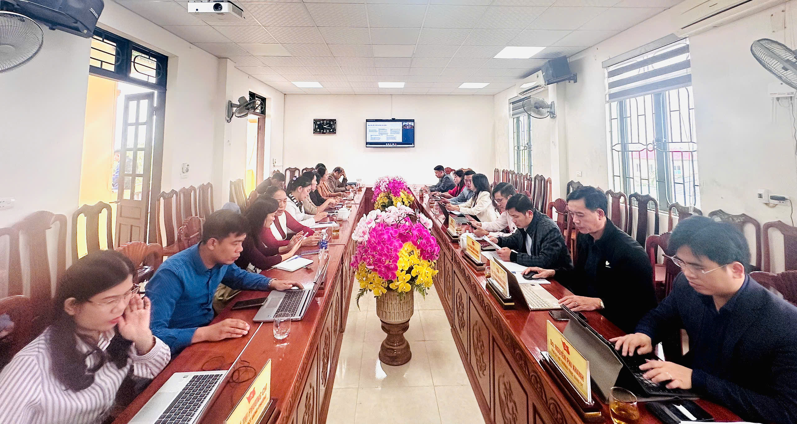 Đồng chí Phạm Hùng Cường, Bí thư Đảng ủy - Chủ trì điểm cầu, cùng các cán bộ chủ chốt tham dự Hội nghị