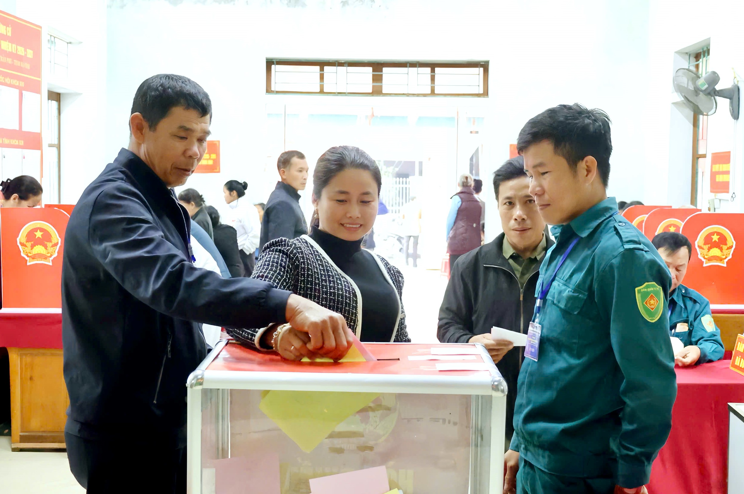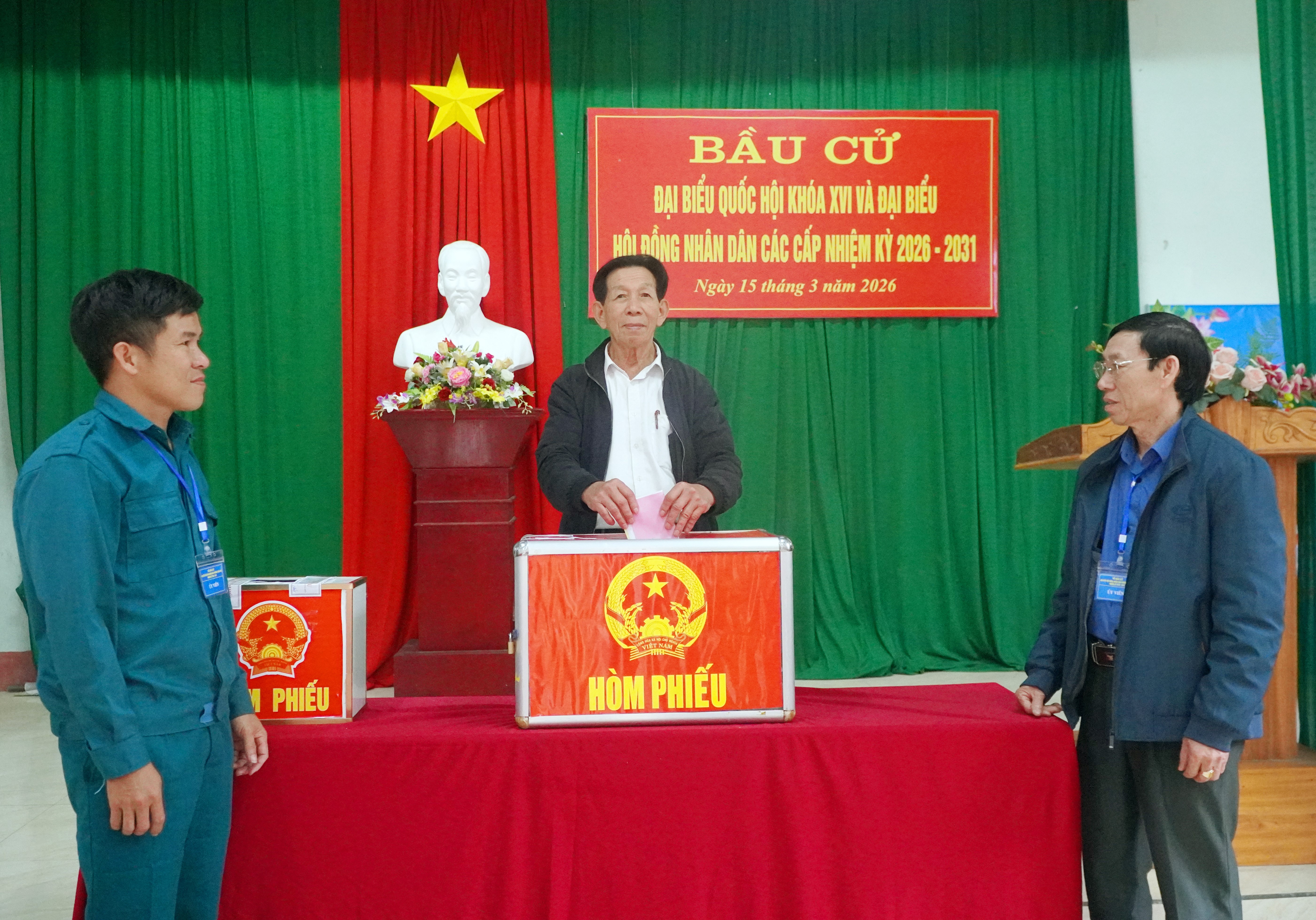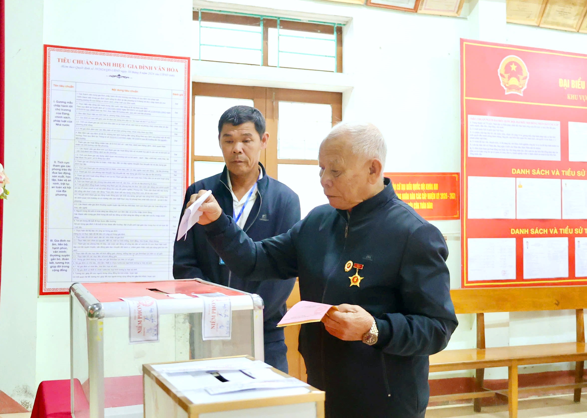 Ngoài ra, Anh hùng Lực lượng vũ trang nhân dân Nguyễn Viết Hồng cũng tham gia bỏ phiếu tại đây, thể hiện tinh thần gương mẫu, trách nhiệm của công dân trong ngày hội lớn của toàn dân.