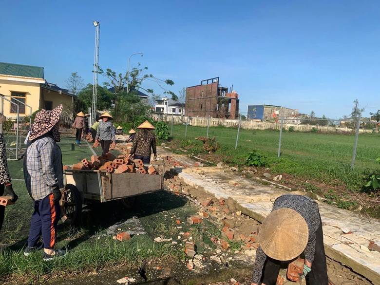Hội viên nông dân hổ trợ chỉnh trang khuôn viên nhà văn hóa tổ dân phố