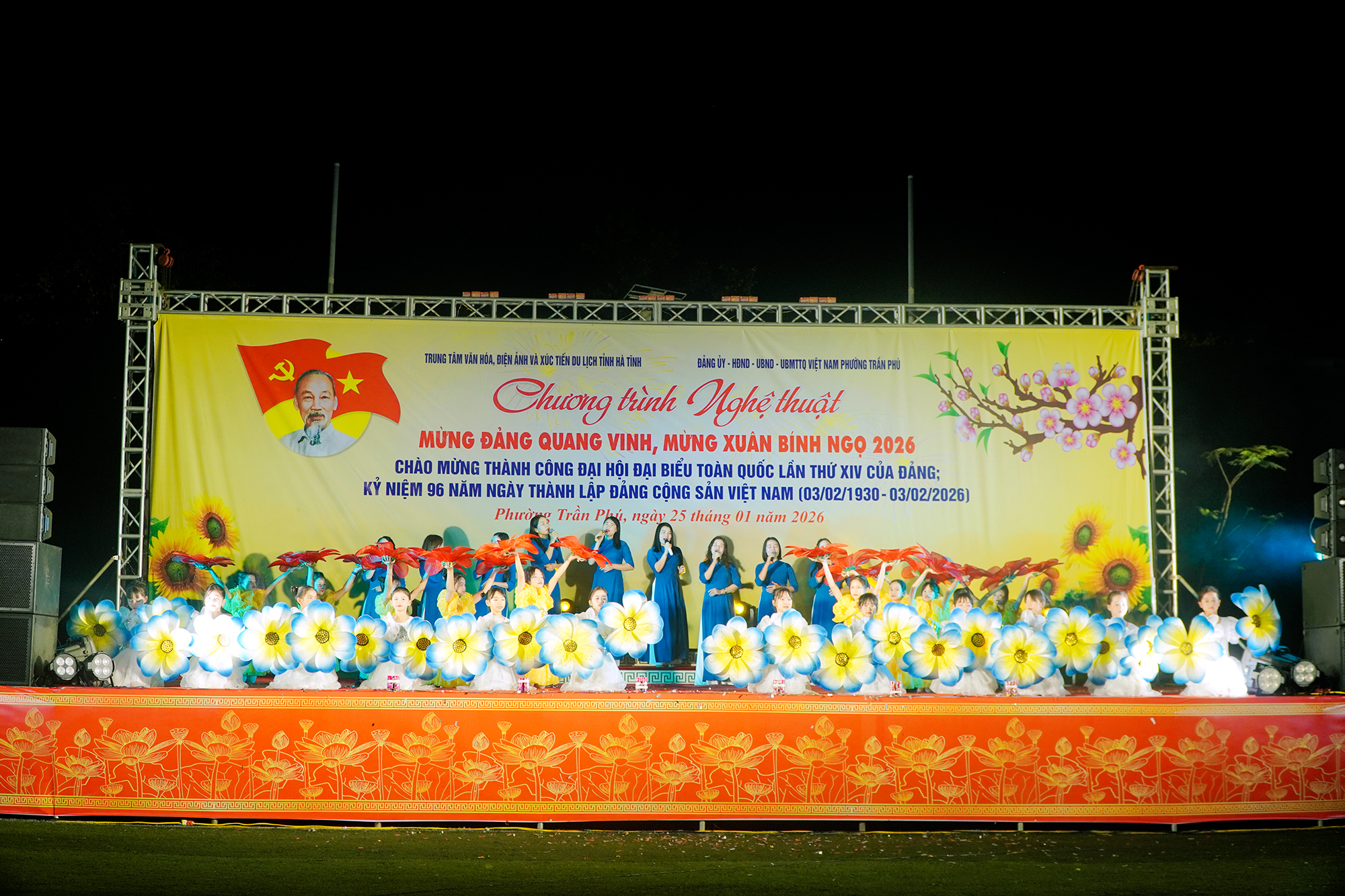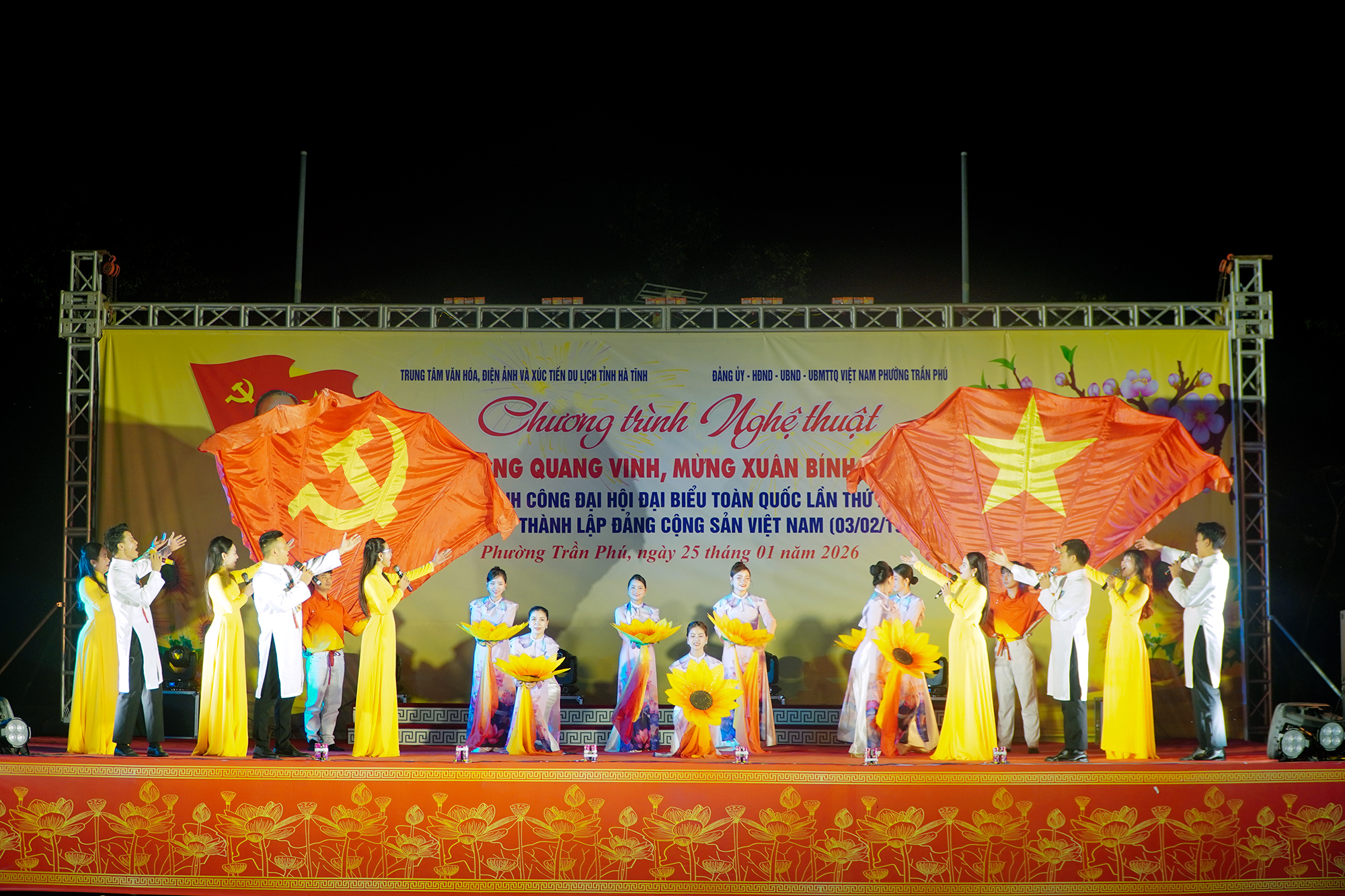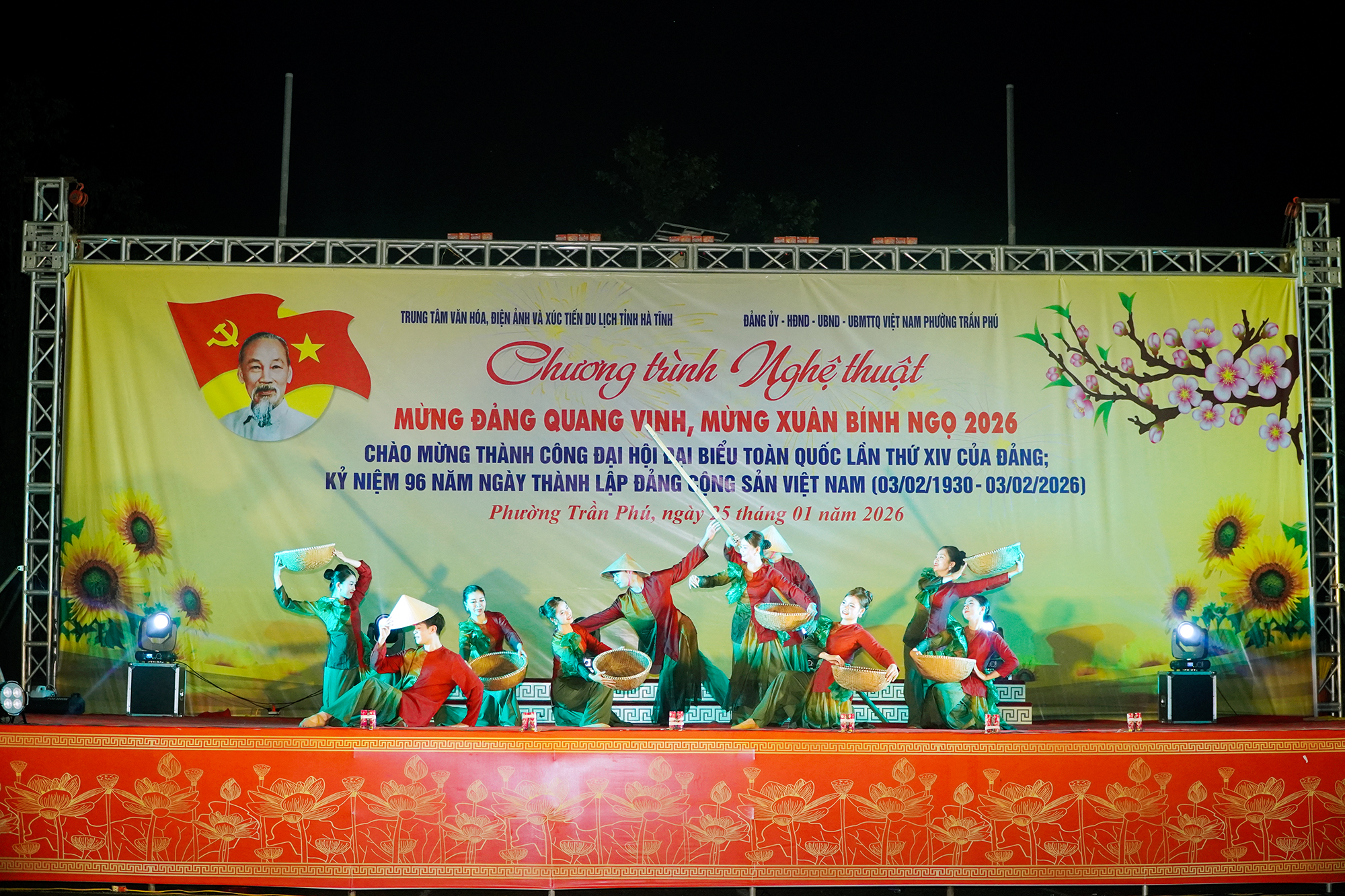 Chương trình do các nghệ sĩ, diễn viên của Trung tâm Văn hóa, Điện ảnh và Xúc tiến Du lịch Hà Tĩnh cùng cán bộ, giáo viên, học sinh và lực lượng diễn viên quần chúng phường Trần Phú biểu diễn. Sự kết hợp hài hòa giữa nghệ thuật chuyên nghiệp và phong trào quần chúng đã tạo nên bức tranh nghệ thuật sinh động, lan tỏa không khí rạo rực, phấn khởi, thấm đẫm niềm tự hào hướng về Đảng, về mùa Xuân mới của quê hương, đất nước.