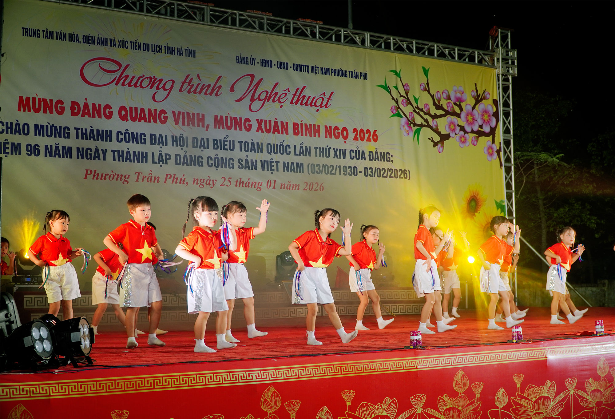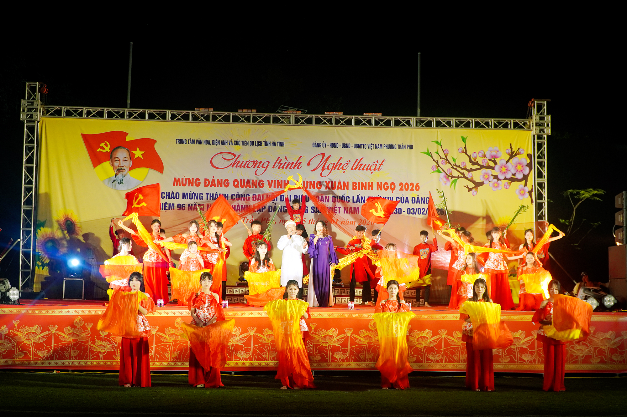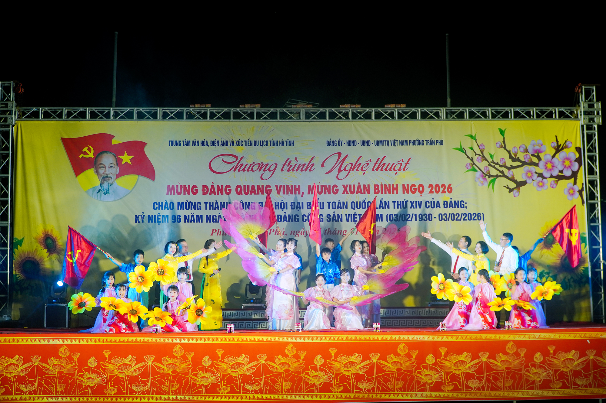 Chương trình do các nghệ sĩ, diễn viên của Trung tâm Văn hóa, Điện ảnh và Xúc tiến Du lịch Hà Tĩnh cùng cán bộ, giáo viên, học sinh và lực lượng diễn viên quần chúng phường Trần Phú biểu diễn. Sự kết hợp hài hòa giữa nghệ thuật chuyên nghiệp và phong trào quần chúng đã tạo nên bức tranh nghệ thuật sinh động, lan tỏa không khí rạo rực, phấn khởi, thấm đẫm niềm tự hào hướng về Đảng, về mùa Xuân mới của quê hương, đất nước.