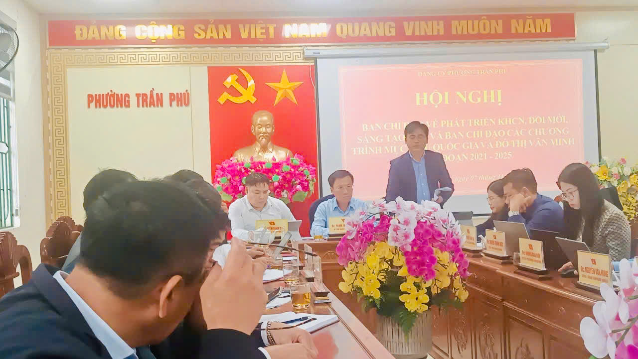 Sáng ngày 07/11/2025, Ban Chỉ đạo về phát triển khoa học, công nghệ, đổi mới sáng tạo, chuyển đổi số và Ban Chỉ đạo các Chương trình mục tiêu quốc gia và đô thị văn minh phường Trần Phú tổ chức hội nghị triển khai nhiệm vụ thời gian tới.