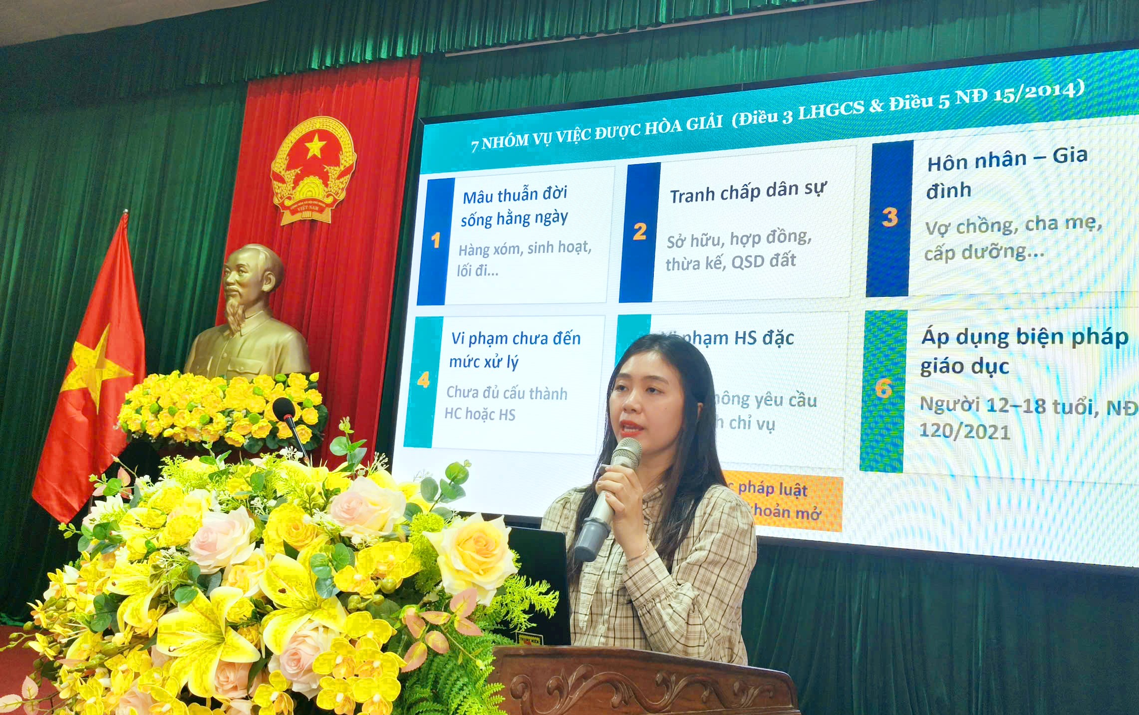 Tại hội nghị, các đại biểu đã được truyền đạt, cập nhật những nội dung quan trọng về pháp luật và nghiệp vụ, kỹ năng hòa giải ở cơ sở; đồng thời được giới thiệu, bổ sung kiến thức pháp luật trong một số lĩnh vực thiết thực, gắn với thực tiễn đời sống, công tác tại địa phương.