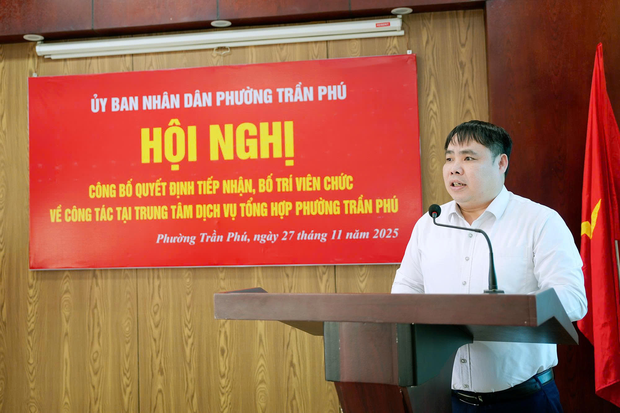 Phát biểu tại buổi lễ, Phó Bí thư Đảng ủy - Chủ tịch UBND phường Nguyễn Đình Diệu đánh giá cao kinh nghiệm, tinh thần trách nhiệm và chuyên môn của đội ngũ viên chức được điều động. Đồng chí bày tỏ tin tưởng rằng sự có mặt của các viên chức mới sẽ tạo thêm sức bật cho Trung tâm Dịch vụ tổng hợp, giúp đơn vị sớm hoạt động ổn định, hiệu lực – hiệu quả, phục vụ nhân dân ngày càng tốt hơn và đóng góp tích cực vào phát triển kinh tế – xã hội của phường Trần Phú.