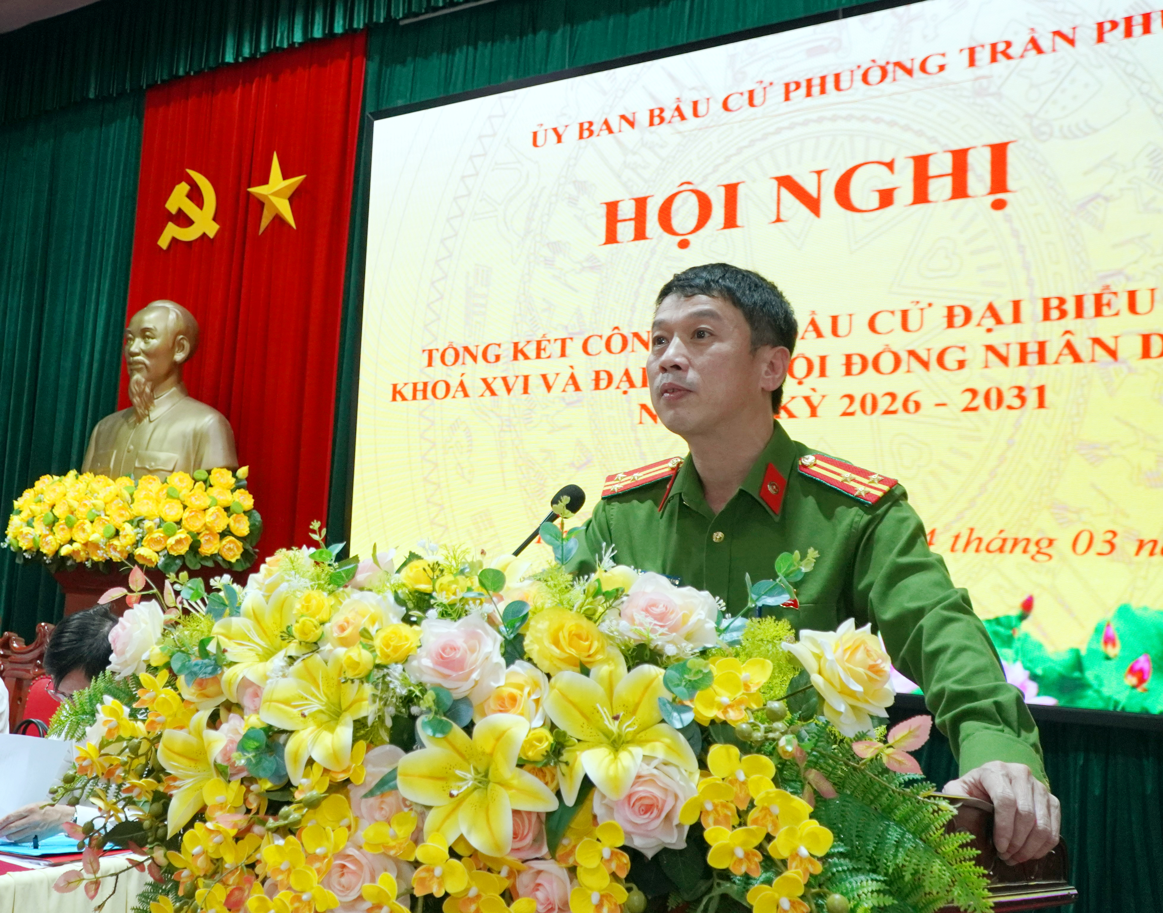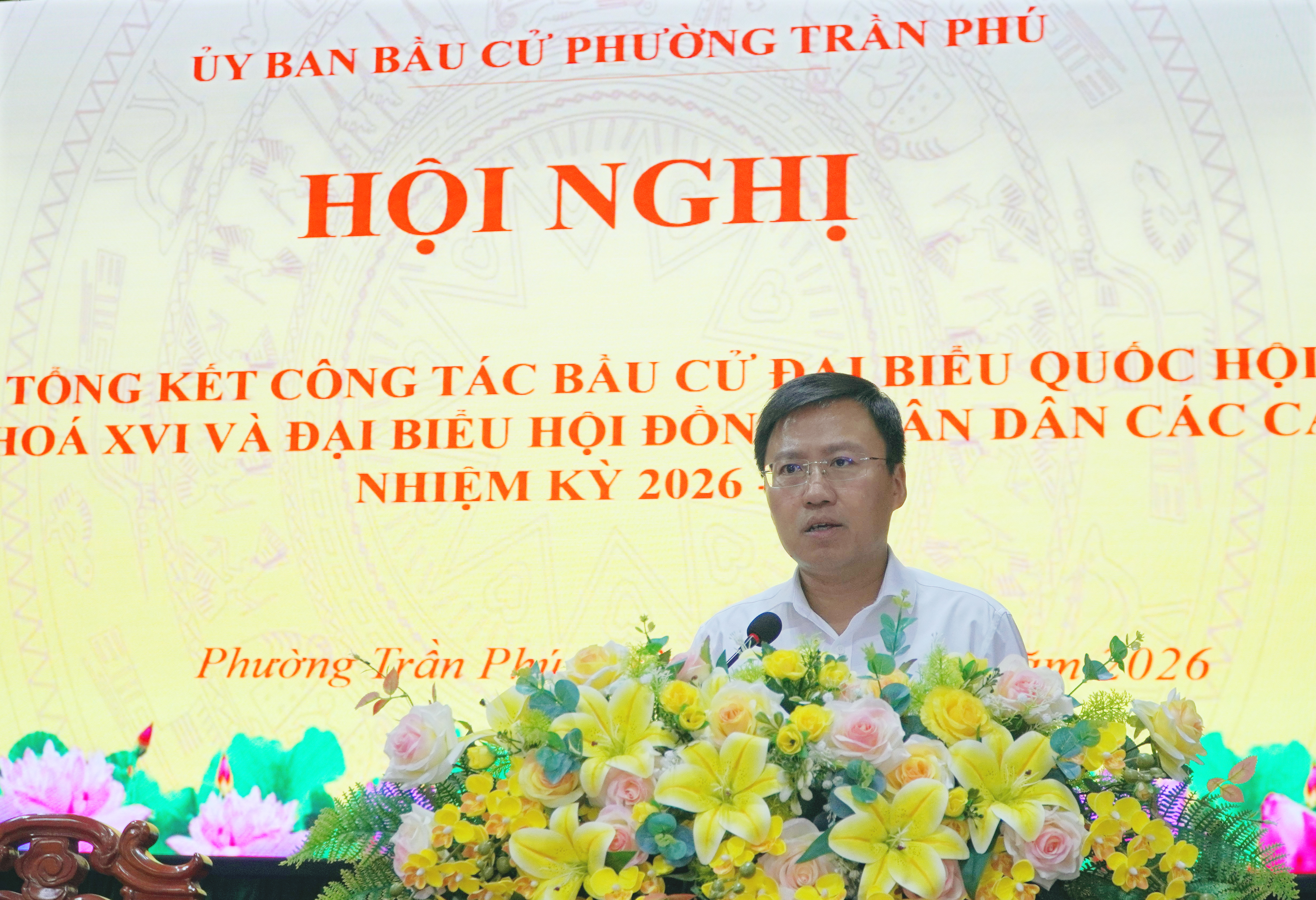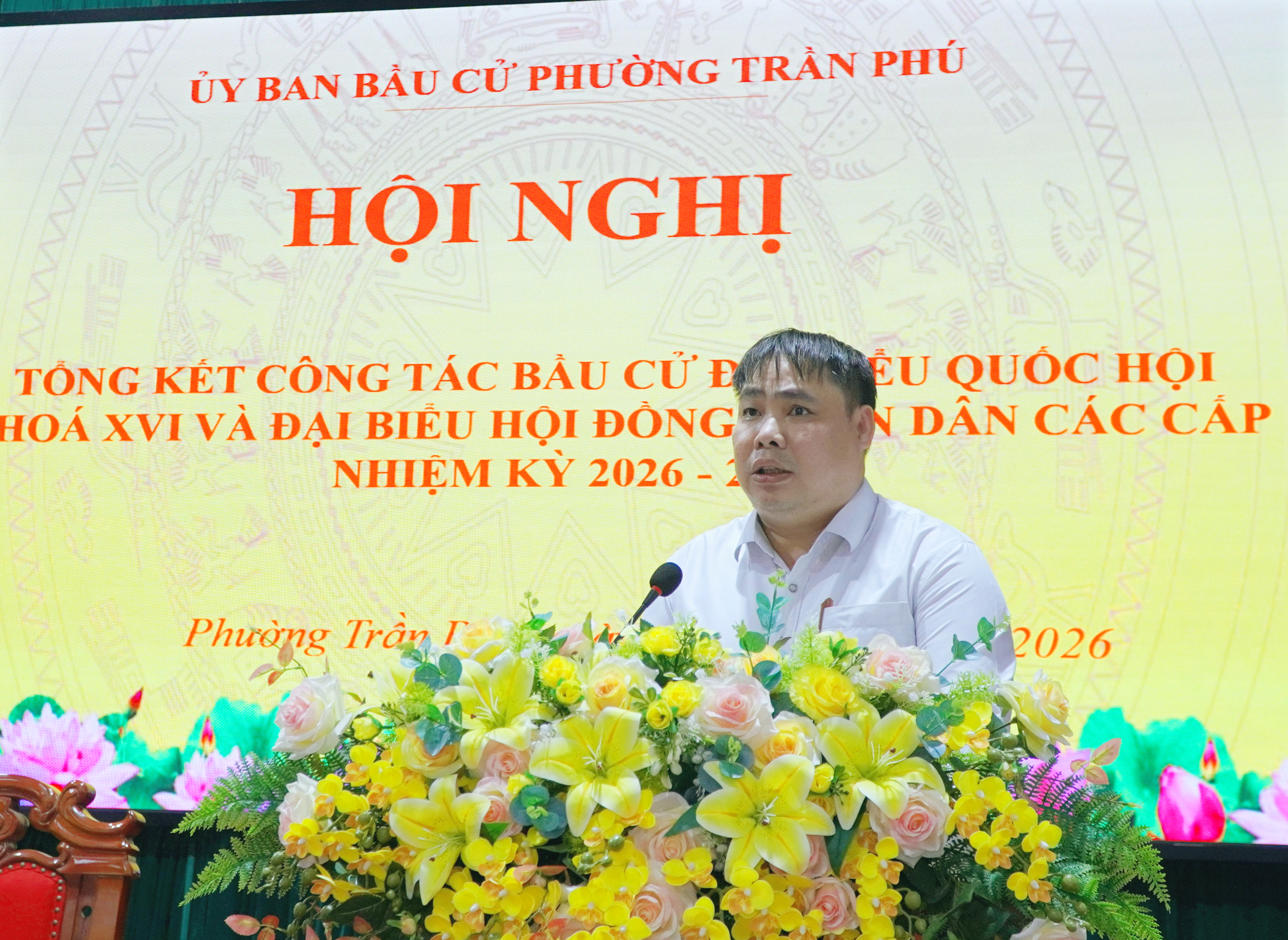 Phát biểu tại hội nghị, đồng chí Nguyễn Thị Nhuần, Trưởng ban Pháp chế, HĐND tỉnh ghi nhận, biểu dương những nỗ lực, cố gắng của cấp ủy, chính quyền và Nhân dân phường Trần Phú trong tổ chức thành công cuộc bầu cử; đồng thời nhấn mạnh, những kết quả đạt được là tiền đề quan trọng để địa phương tiếp tục phát huy dân chủ, tăng cường khối đại đoàn kết toàn dân, góp phần thực hiện thắng lợi các nhiệm vụ phát triển kinh tế – xã hội trong nhiệm kỳ mới.