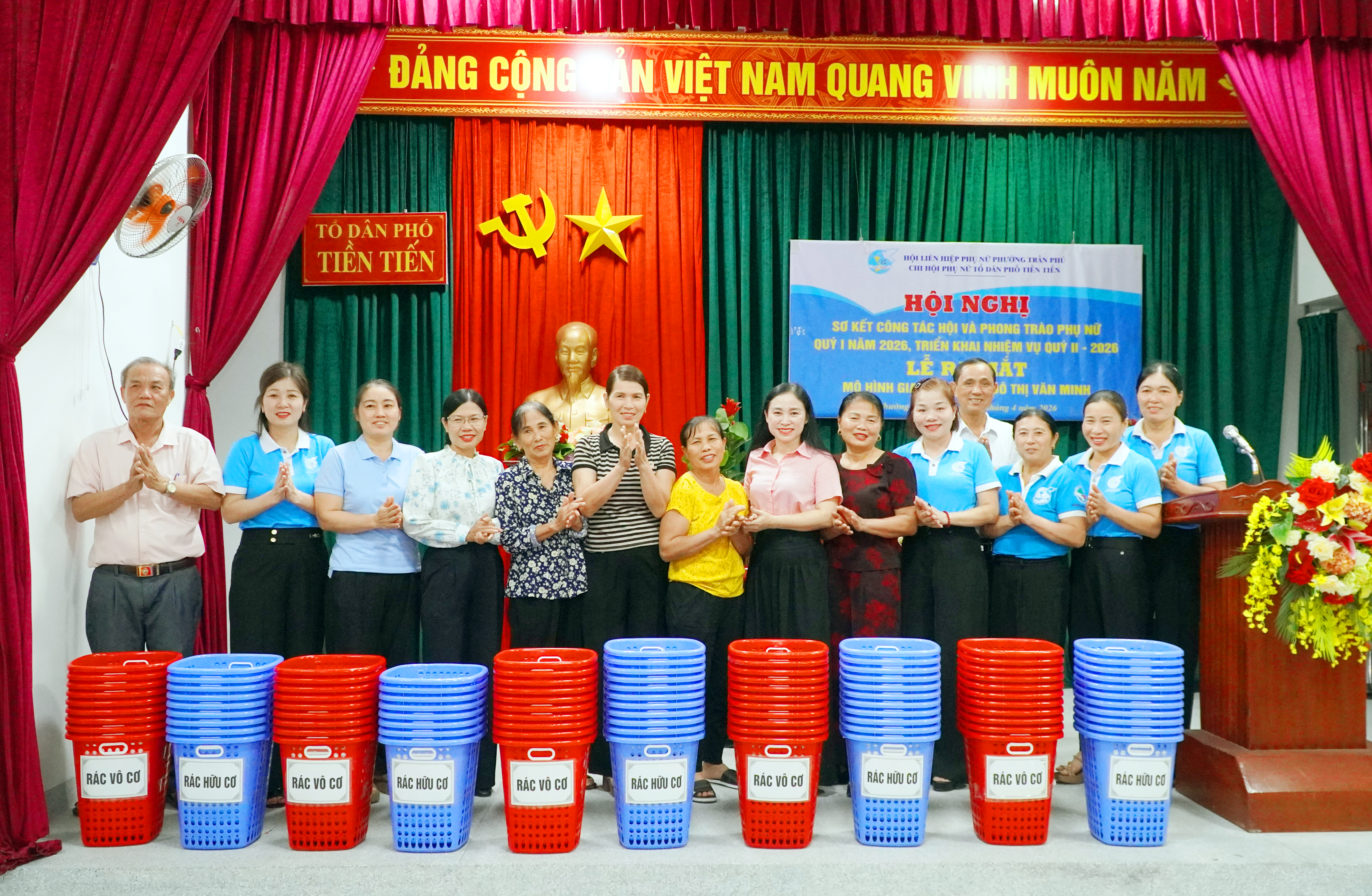Dịp này, Hội LHPN tỉnh và phường Trần Phú đã trao tặng giỏ rác cho hội viên phụ nữ tổ dân phố Tiền Tiến nhằm hỗ trợ triển khai mô hình phân loại rác thải tại nguồn, góp phần bảo vệ môi trường, xây dựng đô thị xanh – sạch – đẹp.