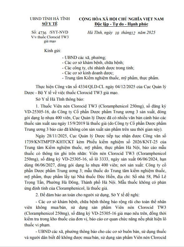 Thuốc Clorocid TW3 giả mạoNguyễn Thị Lam, Chuyên viên phòng VH-XH12/12/2025A -A+Nguyễn Thị Lam, Chuyên viên phòng VH-XH12/12/2025A -A+Thuốc Clorocid TW3 giả mạo