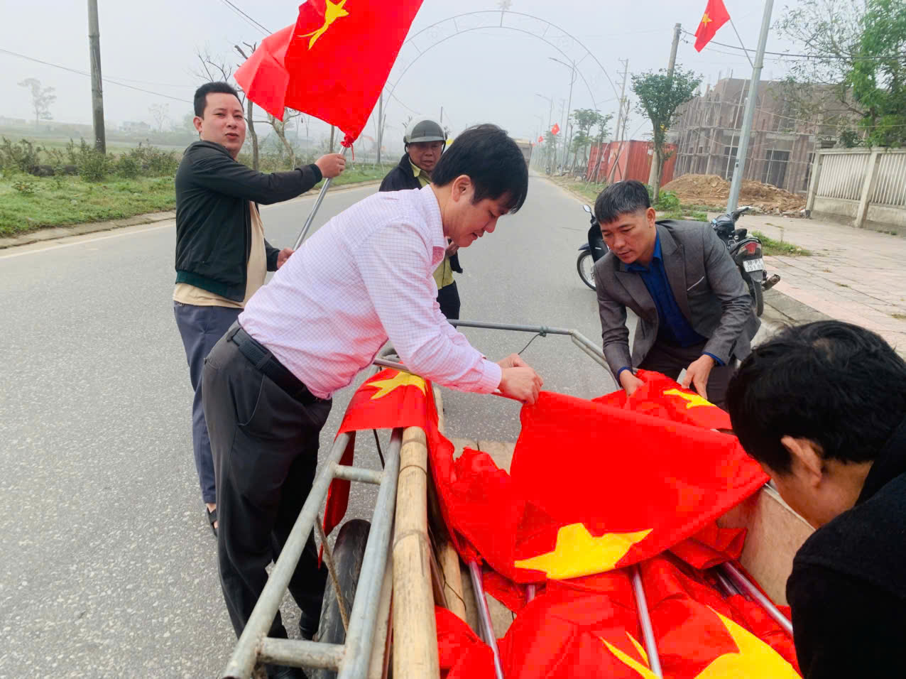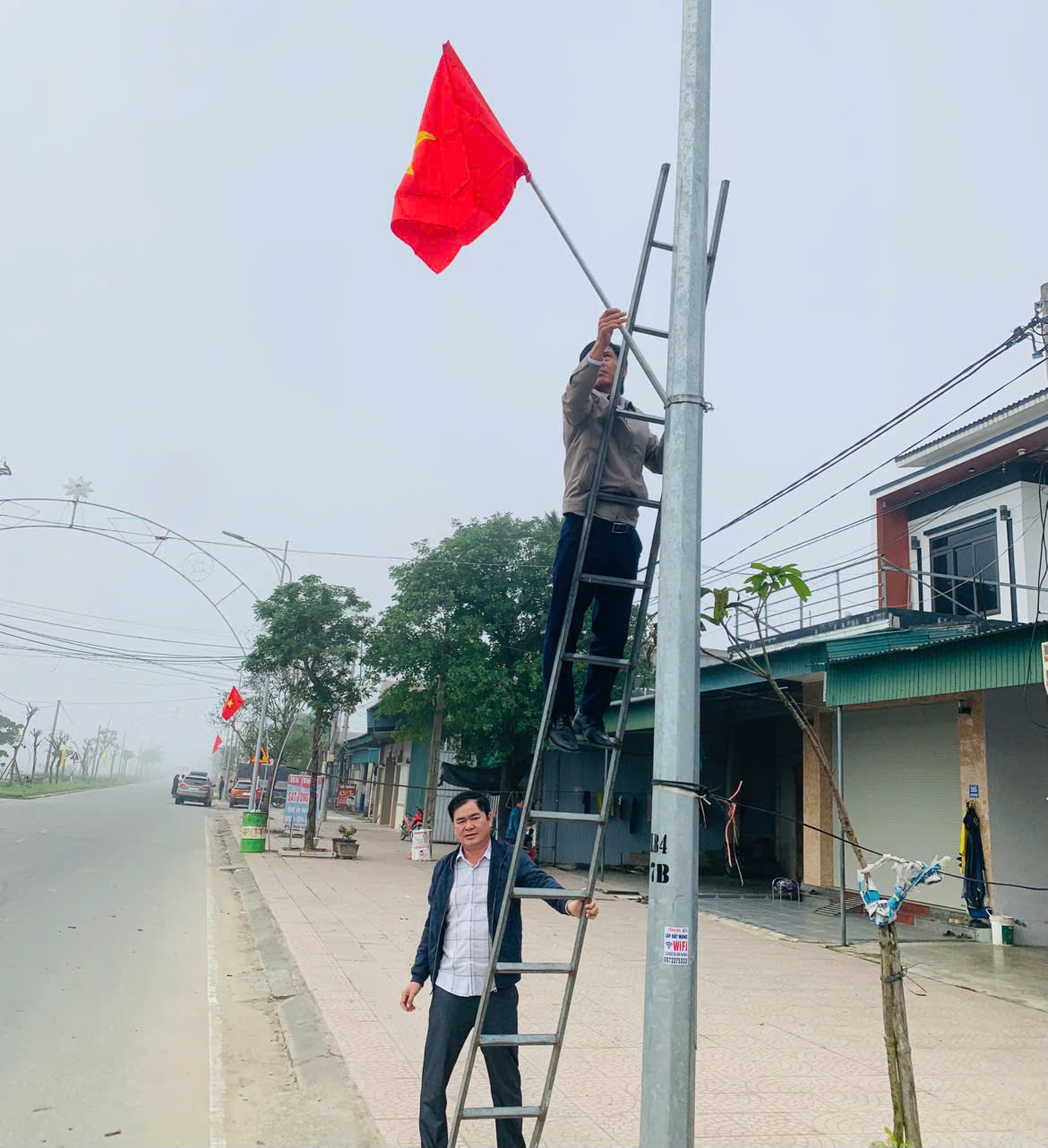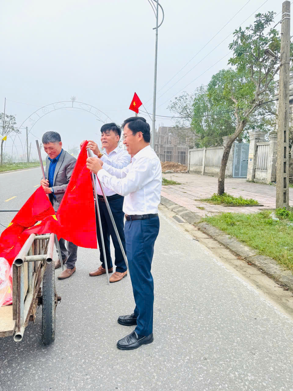 Lãnh đạo cùng ban công tác mặt trận tham gia lắp đường cờ