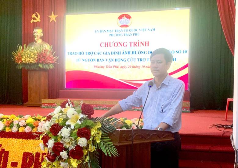 Theo thống kê, bão số 10 đã gây thiệt hại đáng kể về nhà ở, tài sản và đời sống của nhân dân phường Trần Phú. Nhiều mái nhà bị tốc hoàn toàn, ngập nước; cây trồng, hoa màu hư hại; đời sống của người dân gặp nhiều khó khăn. Trước tình hình đó, Ủy ban MTTQ phường đã phối hợp với Ủy ban nhân dân phường chủ động rà soát, tổng hợp thiệt hại, báo cáo đề xuất với cấp trên và huy động nguồn lực xã hội hóa để kịp thời hỗ trợ, giúp bà con sớm ổn định cuộc sống.