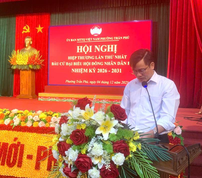 Sáng nay, 04/12, UBMTTQ phường Trần Phú tổ chức hội nghị hiệp thương lần thứ nhất hiệp thương thống nhất cơ cấu, thành phần và số lượng giới thiệu người ứng cử đại biểu HĐND phường nhiệm kỳ 2026 – 2031.
